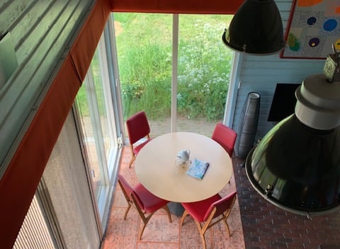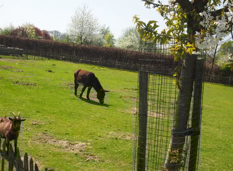 Wauw! Dit is een bijzonder natuurhuisje! Dit houten huisje is ontworpen door de verhuurders zelf en ligt naast twee beekjes, die door de gemeente Leudal stromen. Het huisje heeft een woonkamer, keuken, badkamer en twee slaapkamers. In de ingerichte woonkamer staat een comfortabele zithoek en een eettafel. Vanuit de woonkamer heb je uitzicht op de ezel- en geitenweide. Aansluitend vind je de keuken, voorzien van een gasfornuis, koel- en vriescombinatie, oven, combi-magnetron, koffiezetapparaat en een waterkoker. In de slaapkamer op de begane grond staat een tweepersoonsbed. In de slaapkamer op de eerste etage staat een tweepersoonsbed en een kinderbed. De bedden kunnen naadloos geschakeld worden en desgewenst omgebouwd worden tot eenpersoonsbedden. Buiten is een heerlijk terras met een parasol, ligstoel en een barbecue. Daarnaast is er een zwemvijver waar je gebruik van kunt maken. Als de krielen leggen, kun je verse krieleitjes rapen. Verder mag je kruiden en groenten oogsten uit onze moestuin. Dat betekent: eten van het seizoen. De verhuurders hebben ook pruimen, appels, (stoof)peren en noten in de landschapstuin. Ook daarvan mag je meegenieten als je in de oogsttijd dit huisje boekt. Er staan een aantal (kinder)fietsen en een tandem in de schuur die te leen zijn. Er is ook een kinderstoeltje aanwezig. Boek je tot zondag? Dan ben je vrij om te vertrekken wanneer het jullie uitkomt!
