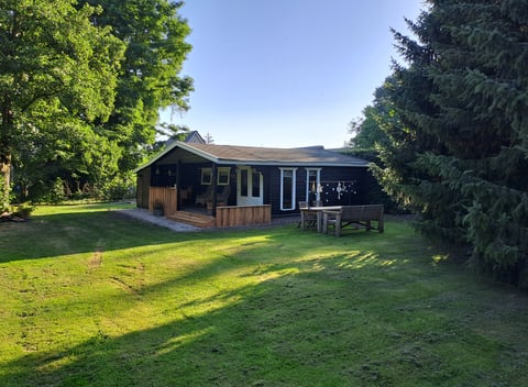 Dit natuurhuisje is een vrijstaande blokhut waarin je in alle rust en privacy kunt genieten van een mooie ruime tuin en van hetgeen Zuidoost Drenthe te bieden heeft. Je kunt kiezen om te slapen in de tweepersoons slaapkamer of je kiest voor een romantische overnachting in de bedstee. De woonkamer heeft een volledig ingerichte open keuken. Daarnaast is er een luxe badkamer. Aan de voorkant van de blokhut is een veranda waar je, zittend in de middag- en/of avondzon, een overzicht hebt over de tuin. Er is tevens Wi-Fi aanwezig evenals een overdekte en afsluitbare stalling en oplaadpunt voor fietsen.