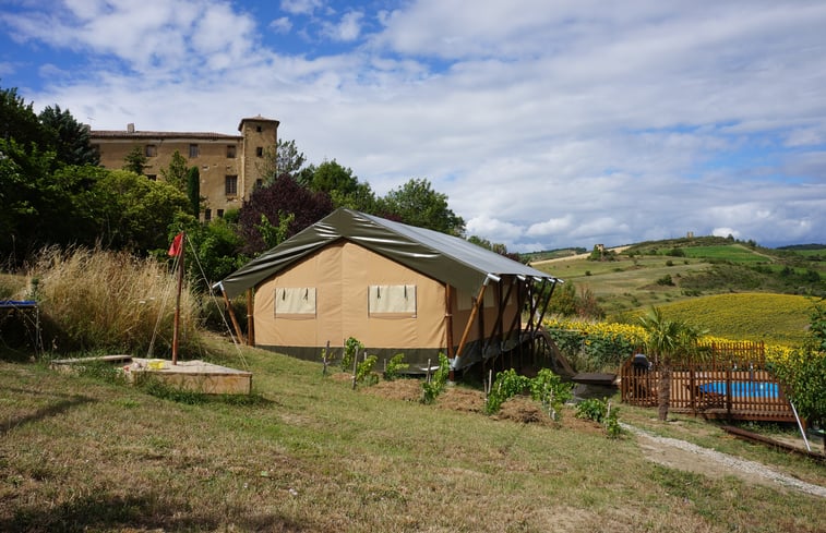 In het zuiden van Frankrijk, aan de voet van de Pyreneeën, verhuren wij een luxe safaritent met privé zwembad en sanitair. Het ligt in onze achtertuin naast een kasteel. Het zes-persoons natuurhuisje is compleet uitgerust en van alle comfort voorzien. De safaritent heeft een eigen perceel van 250m2, een zeshoekig zwembad van 4 meter met eigen zonneterras, een sanitairblok met douchecabine, een droogtoilet en een afwasgootsteen. Het enige wat je hoeft te delen, is het fantastische uitzicht. Het klimaat is mediterraan en met 300 dagen zon per jaar prima geschikt om van begin april tot en met eind oktober vakantie te vieren. Het vroege voorjaar is prachtig, omdat alles in bloei staat. Het najaar is heel mooi door de prachtige herfstkleuren. In de zomer staan de zonnebloemen in bloei. Wij zijn hobby koks en verzorgen graag voor u ontbijt, pizzas en diners. Vraag naar de prijzen en mogelijkheden. Wij zijn hobby koks en