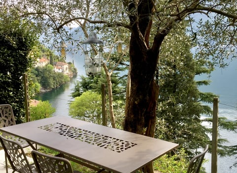 In de tuin staan diverse zitjes en tafels en er staat een antiek theehuis. De oever van het Comomeer ligt praktisch voor de villa. Bij het verlaten van het huis leidt een pad na circa 150 meter naar beneden tot de oever van het meer. Hier aan de oever bij de eeuwenoude brug kun je meteen zwemmen. Precies op dit punt stroomt vers bergwater het meer in dat afkomstig is van de beroemde waterval in Nesso, de L'Orrido di Nesso. Het is een spectaculaire ervaring om naar deze waterval te zwemmen, een geliefde bezigheid van de Italianen. Hier aan de oever kun je op de veerboot stappen. Het is mogelijk surfplanken te huren en een privé tocht te maken met een motorboot en een Itiaanse 'kapitein'. Je wordt dan opgehaald aan de pier.