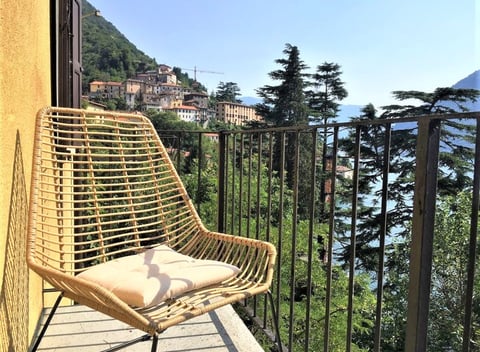 Dit natuurhuisje is één van de twee appartementen in een landhuis bij de oever van het Comomeer. Elk appartement heeft een privé tuin van 1000 m². Het uitzicht vanuit het huis en de tuin zijn overweldigend. Het appartement is genoemd naar de kalme wind die s'ochtends over het Comomeer waait van zuid naar noord. Deze wind zie je dagelijks vanuit het huis en de tuin voorbijtrekken. Het huis ligt in het mooie dorp Nesso, in een ecologische zone, op slechts 40 meter verwijderd van de oever van het Comomeer. Dit is tevens voetgangersgebied en in en rondom de villa vind je absolute rust en privacy. De villa is omgeven door een sprookjesachtige tuin die liefdevol wordt onderhouden. Hier vind je mediterrane bloemen, planten en fruit, waaronder banaan, palmboom, eucalyptus, vijg, kiwi, citroen, granaatappel, druif, kaki, framboos, oleander, lavendel en vele andere soorten waarvan je het fruit mag oogsten tijdens je verblijf. In de de tuin loopt een kleine waterval die bij regen actief wordt en vers bergwater aanvoert. Er staan diverse zitjes en tafels en een antiek theehuis. Je hebt er een adembenemend uitzicht. Het meer ligt voor je en in de verte zie je het dorp Nesso met het oude kerkje.