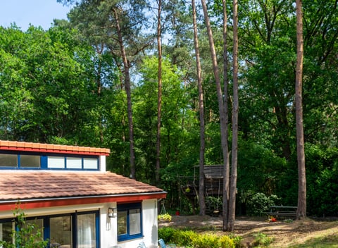 De auto leidt je langs ontelbare hoge bomen. Ben je verdwaald? En dan zie je opeens een geheim plekje, verscholen in een prachtige omgeving, dat alleen mag worden gevonden door echte levensgenieters. Je hebt de ideale locatie gevonden om tot rust te komen. Binnen lonkt de blauwe sofa, de open haard knispert, het huis ademt sfeer. Vanuit de voordeur stap je zo het bos in. Het is hier echt genieten!