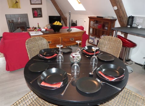 Het natuurhuisje is een vakantiehuis dat gebouwd is als een open loft in een watermolen van voor 1650. Het heeft één slaapkamer en is een romantisch vakantieverblijf, vol karakter en met overal nog de oude balken die zichtbaar zijn gebleven. Er is een vrijstaand bad, een privé balkon en een eigen tuin. Als je extra slaapplaats nodig mocht hebben, dan is er de mogelijkheid van een tweepersoons slaapbank. De badkamer is in open verbinding met de slaapkamer. Het huisje heeft een volledig ingerichte keuken met vaatwasser, een tv met Engelse en Franse zenders, USB-laadpunten, WiFi, een dvd-speler, een houtkachel, een barbecue en je kunt gebruik maken van het zwembad van 50 m² (verwarmd met zonne-energie). In de tuin zijn ook spelletjes, waaronder een badmintonnet, tafeltennis, jenga en jeu de boules.