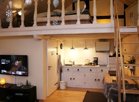 Ons kleine, exclusieve gastenverblijf natuurhuisje op een historische vakwerkboerderij uit 1767 met eigen ingang is opengewerkt met woonkamer, geïntegreerde keuken en badkamer op de begane grond en op de eerste verdieping bevindt zich ook een slaapzaal. Op onze boerderij is er een hond, katten, schapen, geiten, paarden en scharrelkippen.
