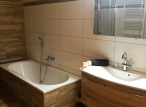 Bij binnenkomst kunt u het hout ruiken waarmee ons nieuwe natuurhuisje is gebouwd. Op de begane grond is er een ruime entree, grote badkamer met bad, douche, wastafel en wasmachine/droger, een toilet met wastafel en bijkeuken. Ook hier is onze open woonkeuken met kookeiland, en in het midden staat een prachtige tegelkachel. Een grote schuifdeur biedt een magisch uitzicht en ook toegang tot het terras. Een 2 pers. slaapbank is beschikbaar in de woonkamer (aangegeven als 3e slaapkamer) met een prima ligging. Op de 1e verdieping zijn er 2 slaapkamers met 2 x 2 pers. Bedden en eventueel nog 2 x 1 pers. opklapbed. Hier is ook de 2e badkamer met douche, wastafel en toilet. De slaapkamer aan de voorzijde heeft een groot balkon. De gehele bovenverdieping heeft zolders aan beide zijden van de slaapkamers, waar extra bergruimte beschikbaar is. Het huis en de locatie zijn ideaal voor het organiseren / houden van retraites, workshops, conferenties in de natuur, etc.