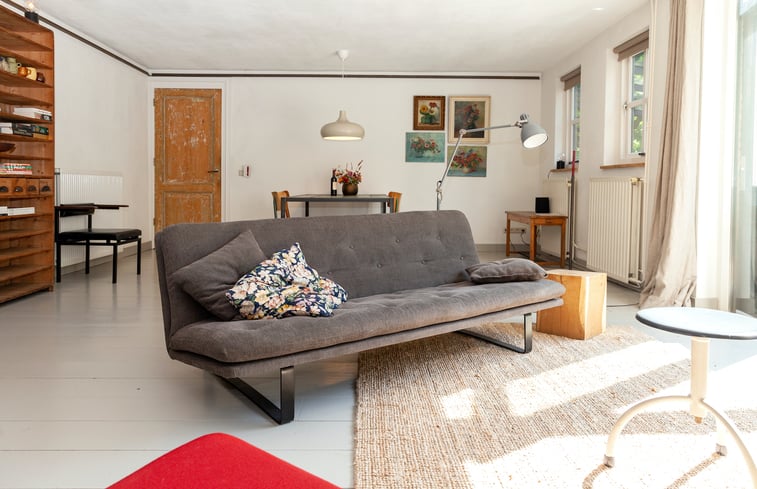 In de voormalige boerenschuur is het riante, sfeervolle vakantie appartement 'rondomtuin' gerealiseerd, met eigen parking en entree. De gezellige woonkamer nodigt uit om te lezen ( gevulde boekenkast ), muziek te maken achter de piano, uitgebreid te tafelen, een mooie film te kijken, ... Door de openslaande deuren heb je vrij zicht op de weelderige tuin. Het grote terras is overdekt, dus je kunt bijna altijd buiten zitten. De keuken biedt alles om lekker te koken. Je mag hiervoor oogsten uit onze biologische moestuin. Er is een slaapkamer met openslaande deuren naar de tuin, een comfortabel tweepersoonsbed en tussendeur naar de badkamer. En er is een slaapkamer met wastafel en twee eenpersoonsbedden die tegen elkaar gezet kunnen worden. In de ruime badkamer is een inloopdouche. ‘s Zomers is het heerlijk koel binnen, in de winter is het goed te verwarmen. We hebben het vakantie-appartement met veel zorg ingericht en hopen dat onze gasten dit ook waarderen.