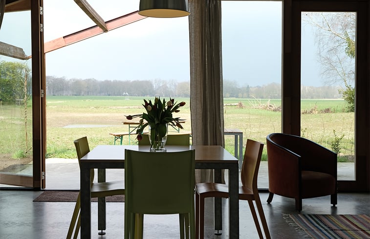 Dit is wat je noemt: a room with a view. Een plek waar al je zintuigen open gaan staan. Deze kleinschalige accomodatie bestaat uit twee geschakelde huisjes van ieder 50m2 en is geschikt voor 2-4 personen. Gelegen in het buitengebied van Gilze, met vrij uitzicht op 20 hectaren biedt dit natuurhuisje volledige privacy en een zee van ruimte. Het huisjes is nieuw en met veel gevoel voor sfeer ingericht en voorzien van de laatste groene snufjes. Naast een gezellige eettafel en een zithoek met houtkachel, is er een tweepersoonsbed op de begane grond en twee eenpersoonsbedden op de vide. Luxe bedlinnen, keuken- en handdoeken (1 groot en 1 klein p.p.) zijn inbegrepen. Het unieke van dit natuurhuisje is de landelijke ligging en het uitzicht naar buiten, waar je eindeloos ver weg kijkt over glooiend struweel en een kikkerpoel, tot stand gekomen in samenwerking met Brabants Landschap.