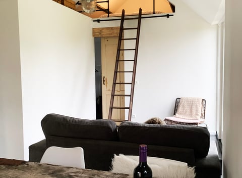 Dit natuurhuisje heeft een prachtige ligging aan de rand van een klein boerenerf met uitzicht over weilanden. U geniet optimaal van rust en privacy. Een rustige en gezellige boerensuite voor 4 personen. De indeling bestaat uit een aparte entree, open keuken uitgerust met een combimagnetron, Nespresso-apparaat, koelkast en kookgelegenheid. Huiskamer met openslaande deuren naar een privé tuin met een vuurkorf en stoelen. Er zijn twee slaapkamers. Beneden is 1 slaapkamer met een tweepersoonsbed en een en-suite badkamer met douche, toilet en wastafel. Boven is een zolderkamer met 1 tweepersoonsbed. (geen losse bedden). Voor kleine kinderen kunnen we de slaapbank als kinderbed klaarmaken in plaats van de zolderkamer boven. (graag aangeven). Heerlijke vloerverwarming voor winter- of koude dagen! Prima startpunt voor uitstapjes naar het bos! Roken is in de woning niet toegestaan.