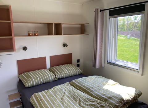 Op uw overdekte veranda kunt u heerlijk relaxen en heeft u uitzicht over landerijen en de bosrand. En wanneer u in de avondzon op uw overdekte terras geniet van een wijntje ziet u misschien wel een paar reeën lopen. Zij zijn in de avondschemering regelmatig te zien! Op 300 meter loopafstand vindt u een rustige zwemplas midden in het bos. Vanaf ons terrein loopt u zo het bos in en de heide op met vele fiets en wandelroutes. De lodge in 't kort: -Compleet ingerichte woonkamer en keuken (incl. vaatwasser en Nespresso apparaat, waterkoker, magnetron, koelkast met vriesvakje) -2 slaapkamers -compleet ingericht voor 4 personen-Douche en aparte WC -Overdekte veranda -inclusief televisie en gratis WIFI. -Op ons terrein staat ook een hottub welke gereserveerd kan worden (o.b.v. beschikbaarheid). Eigen berging waar je prima je fietsen of andere spullen in kan zetten! Smorgens vers gebakken broodjes en op enkele dagen zijn er savonds diverse snacks en warme maaltijden verkrijgbaar.