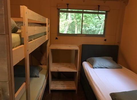 Het natuurhuisje is gelegen tussen Zoersel en Sint-Antonius, op een groot stuk natuur, bos en weide. We stallen hier 5 prachtige Friese paarden, 1 KWPN, 1 welsh pony en 1 lieve mini shetter. Met de Friese parels trekken we op open koetstocht. Verder hebben we rammen, kippen en twee lieve honden Fleur (een border collie) en Roos (Friese Stabij) allebei teefjes. Je verblijft in een lodge met groot terras en zicht op de weide. Naast de ruime slaapkamers is er een complete badkamer, een keuken (gemaakt van petflessen), een ruime zithoek en een eettafel. Alle meubelen zijn brocante en geven de hele inrichting een uniek karakter. Voor de koude periode staat er een gaskachel in de tent. Natuurlijk genieten is onze leuze, dit staat ook voor respect voor de natuur, energie via zonnepanelen, gezuiverd grondwater voor de douche, droogtoilet, en alle afvalwater wordt gezuiverd. Gasten zijn het hele jaar door welkom.