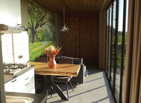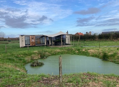 Laat de drukte van het leven even achter je in deze gezellige tiny house. De tiny house staat als ‘pop-up’ in een grasland, waarbij je kan genieten van een uitgestrekt vergezicht. Begin de dag met een gezonde wandeling door het bos dat op 5 km van de accommodatie te vinden is. U kunt de dagelijkse boodschappen halen bij de supermarkt 3 km verderop en het dichtstbijzijnde restaurantje vindt u op 4 km van het verblijf. Ontdek verder het Brugse Ommeland tijdens de talrijke kindvriendelijke uitjes, zoals de kinderboerderijen, pretparken en grote speeltuinen, recreatiezwembaden. Een dagje aan de Belgische kust, die je op 30 à 40 minuten rijden bereikt, is uiteraard ook een must. Ook de gekende steden Gent en Ieper zijn vlot te bereiken, waar je heel wat cultuur kan opsnuiven. De tiny house wordt om de 4 maanden verplaatst naar een ander perceel. Je kan er met 4 personen logeren. Er is 1 aparte slaapkamer met 2-persoonsbed en 1 slaapbank voor 2 personen, die in de woonruimte staat.