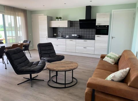 Dit natuurhuisje is een luxe 6-persoons vakantiehuis (gebouwd in 2021) met een ruime tuin, terras en een vlonder direct aan het water. Uniek is het vrije uitzicht. De woonkamer met grote eettafel en 2 slaapkamers kijken uit over het water. De luxe keuken is voorzien van inductie, grote koelkast, diepvries, combi-oven en vaatwasser. Er zijn 3 slaapkamers. Twee met luxe 2-persoonsboxspring en 1 met stapelbed. In de hal is een apart toilet met luxe wastafel. In de badkamer is aanwezig een ruime regendouche, dubbele wastafel en 2e toilet. Buiten is er een schuur met ruimte voor uw fiets en sup etc. Tot uw beschikking een bootje met elektromotor om een rondje mee te varen. Honden niet toegestaan. Indien u zou willen karper-vissen kunt u van onze vlonder uw eigen karper-stek maken (tegen betaling en obv beschikbaarheid andere stekken). Dit word verzorgd door Carp Nijstad, neem contact op voor hun tarieven.