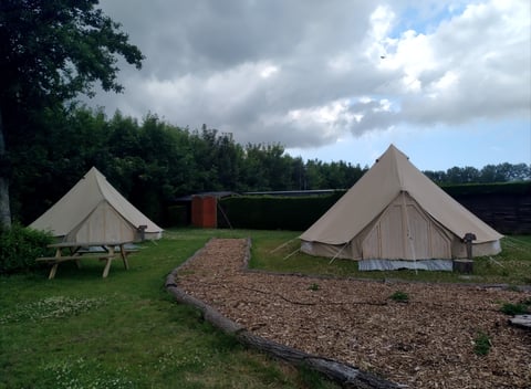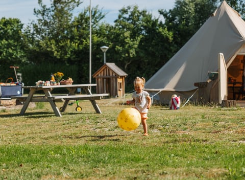 De tent heeft een diameter van 6 meter, een houten deur die u kunt afsluiten en 4 steigerhouten bedden met daarin een matras van 80 bij 200 cm. In elke tipi zijn 4 eenpersoons dekbedden en 4 kussens aanwezig. Bedlinnen kunt u zelf meenemen of optioneel bijboeken voor 7,95 euro per pakket. Verder is de tent volledig ingericht: voor en in de tent ligt er een tapijt, u heeft een tafel voor 4 personen incl. vier comfortabele stoelen. Er kan gekookt worden op een elektrische pit en er is een barbecue en een koelbox aanwezig. Houtskool dient u zelf mee te nemen. Naast het serviesgoed is er een koelbox, emmer met afwasteil, een klein elektrische verwarming, bezem, waterkoker, espressomachine, jerrycan, veger en blik, een hygiëne set en een waslijn aanwezig.