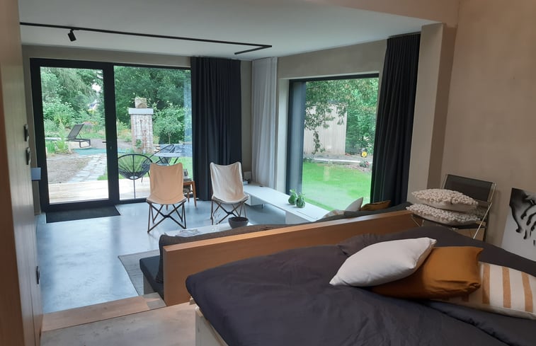 Wij bieden twee stijlvolle natuurhuisjes naast onze ecologisch verbouwde woning, gelegen in een privaat park (55 are) in natuurgebied dat deel uitmaakt van de groene gordel rond Brussel. de natuurhuisjes werden in 2021 volledig gerenoveerd en bieden alle nodige comfort voor een zorgeloze vakantie: ingerichte keuken, eigen badkamer en toilet, gedekte bedden, handdoeken, kamerjassen, barbecue en ecologische producten. De muren van de Loft zijn afgewerkt met natuurlijke leempleister wat zorgt voor een evenwichtig binnenklimaat en onze warmtepomp zorgt voor een aangename temperatuur, ook in de zomer. In de natuurlijke tuin met verschillende zithoekjes en terrassen kom je helemaal tot rust en in de ecologische zwemvijver kan je baantjes van 14 meter trekken of gewoon verkoeling zoeken.