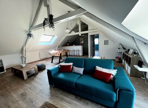 De accommodatieHet huis heeft een door muren omsloten oppervlakte van 140m2.Het heeft een privétuin die uitkomt op de weide van de stallen.Op de eerste verdieping kunt u genieten van een bar met tafelvoetbal.Tafeltennis is ook beschikbaar.Wij kunnen u ook de mogelijkheid bieden om een "serial 1" elektrische fiets en een Harley-Davidson motorfiets te huren (zie voorwaarden ter plaatse).Toegang voor reizigersHet huis is een volledig onafhankelijke accommodatie van de rest van het eigendom. Alleen de tuin is gemeenschappelijk. U heeft uw eigen terras en barbecue en een beveiligde parkeerplaats op het terrein.Andere opmerkingenWij bieden onze gasten graag diensten van hoge kwaliteit en helpen u graag met uw installatie, zodat u in de beste omstandigheden van uw verblijf kunt genieten. Wij bieden u de mogelijkheid om uw boodschappen af te halen bij de Leclerc Drive in Ifs als u dat wenst, zodat u met een gerust hart bij uw accommodatie kunt aankomen.