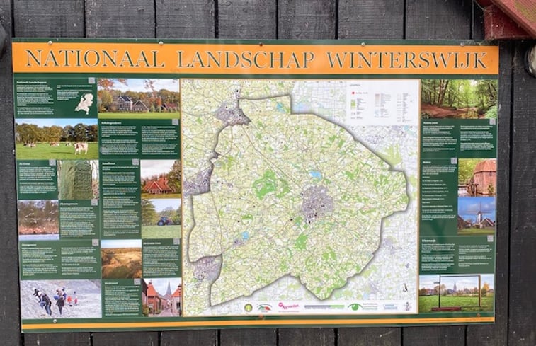 Het natuurhuisje ligt op een kleinschalig vakantiepark, tegen een bosrand aan in het natuurgebied 't Bönnink. Prachtige wandelingen en fietstochten in het buitengebied zijn mogelijk. En het natuurhuisje ligt op nog geen 500 meter van het Hilgelomeer. De Achterhoek is uitgeroepen tot het beste fietsgebied van Nederland! Het buitengebied van Winterswijk is één van de meest waardevolle gebieden in Nederland en heeft het predicaat Nationaal Landschap Winterswijk. Winterswijk heeft onder andere de Steengroeve, wijngaarden, boerderijterrassen, Mondriaan Museum, een schouwburg, een fantastisch winkelcentrum met twee keer in de week een grote markt (woensdag en zaterdag). Restaurants en terrassen zijn volop aanwezig.